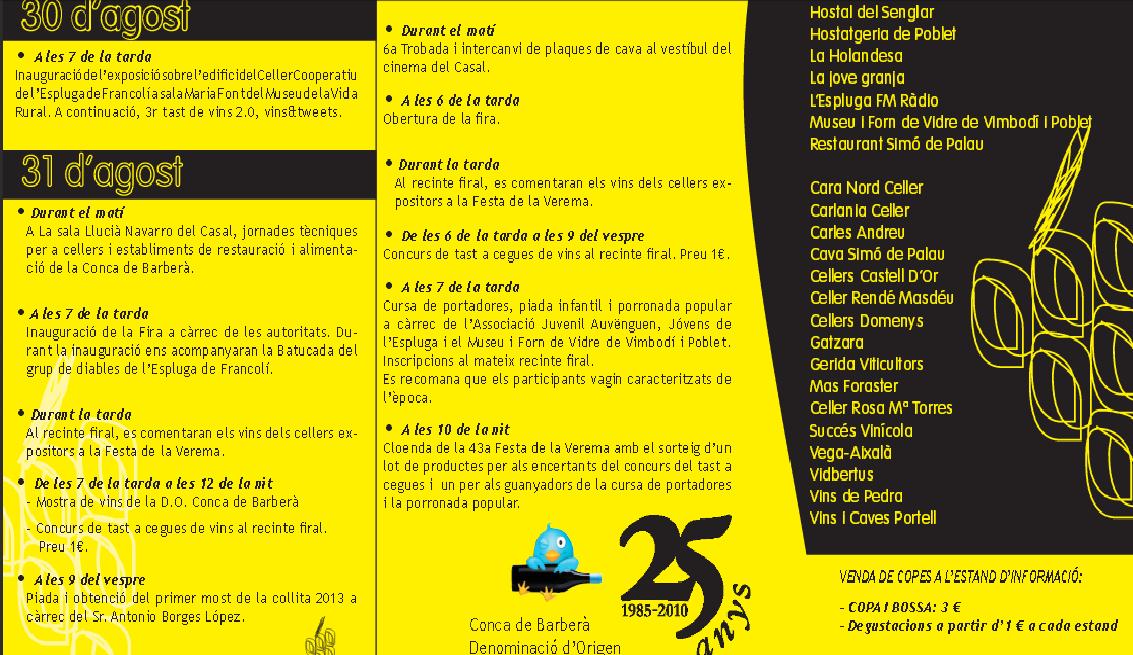 Portada » Catas y reseñas » LA 43ª FESTA DE LA VEREMA DE LA DO CONCA DE BARBERÀ